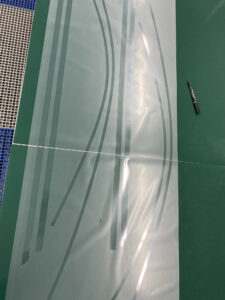 業者さんによっては、フィルムを手でカットする場合がありますが、カットした場所(カットライン)が不均一で見た目が悪かったり、切り方が悪いと糊面が出てしまい汚れが付着しやすくなることもあります。