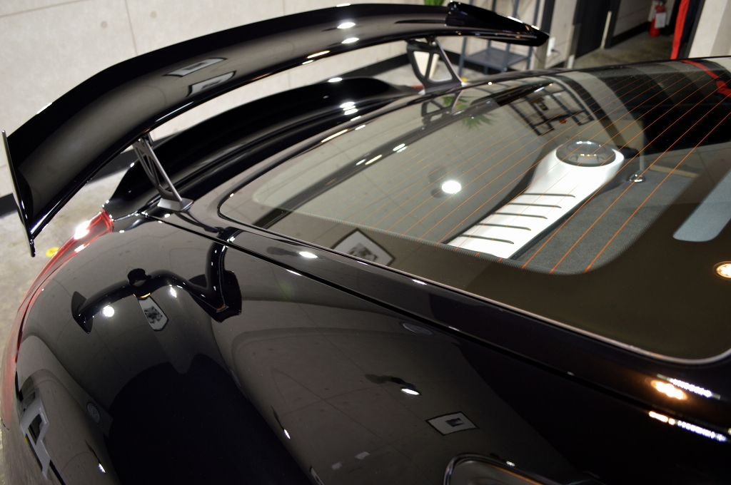 ソリッドブラック映り込みの深さは逸品と言えます。このカラーをお選びのオーナー様は皆様同じであると思いますが、ボディを綺麗にする時には少々気合を入れてお手入れをされていると思います。
