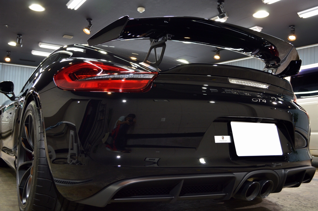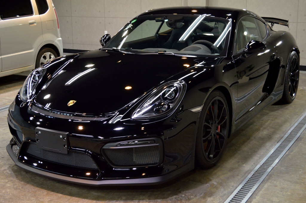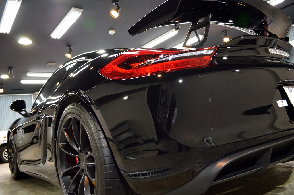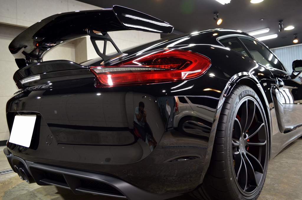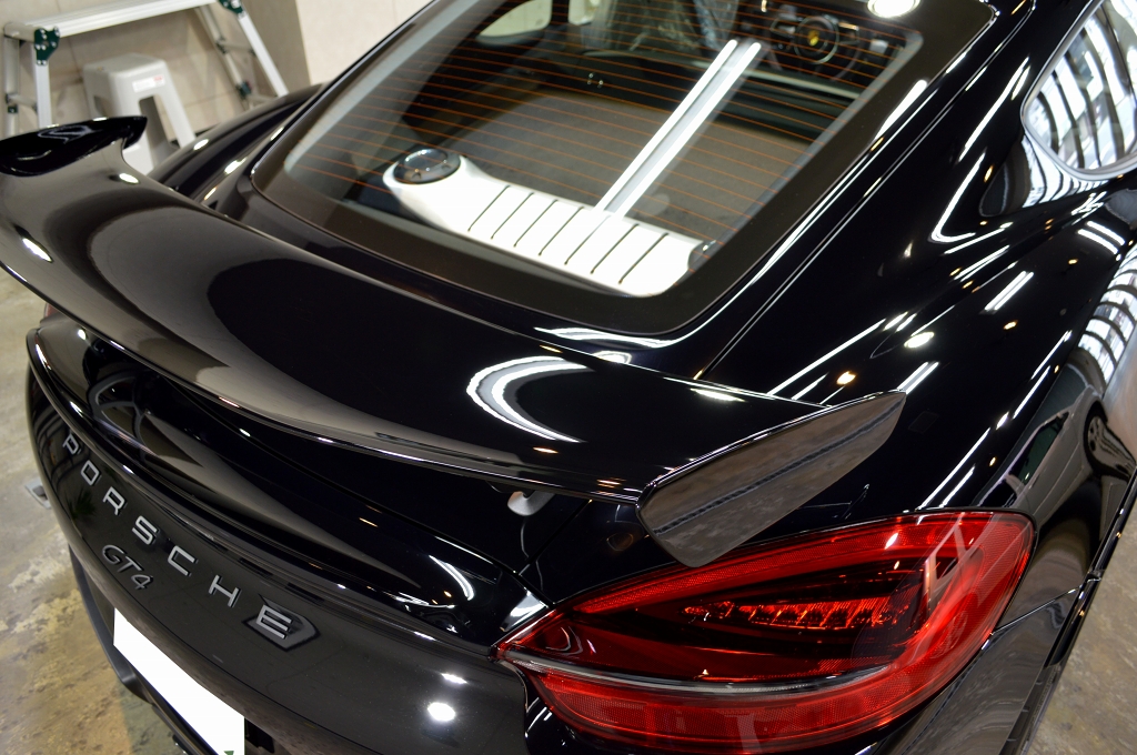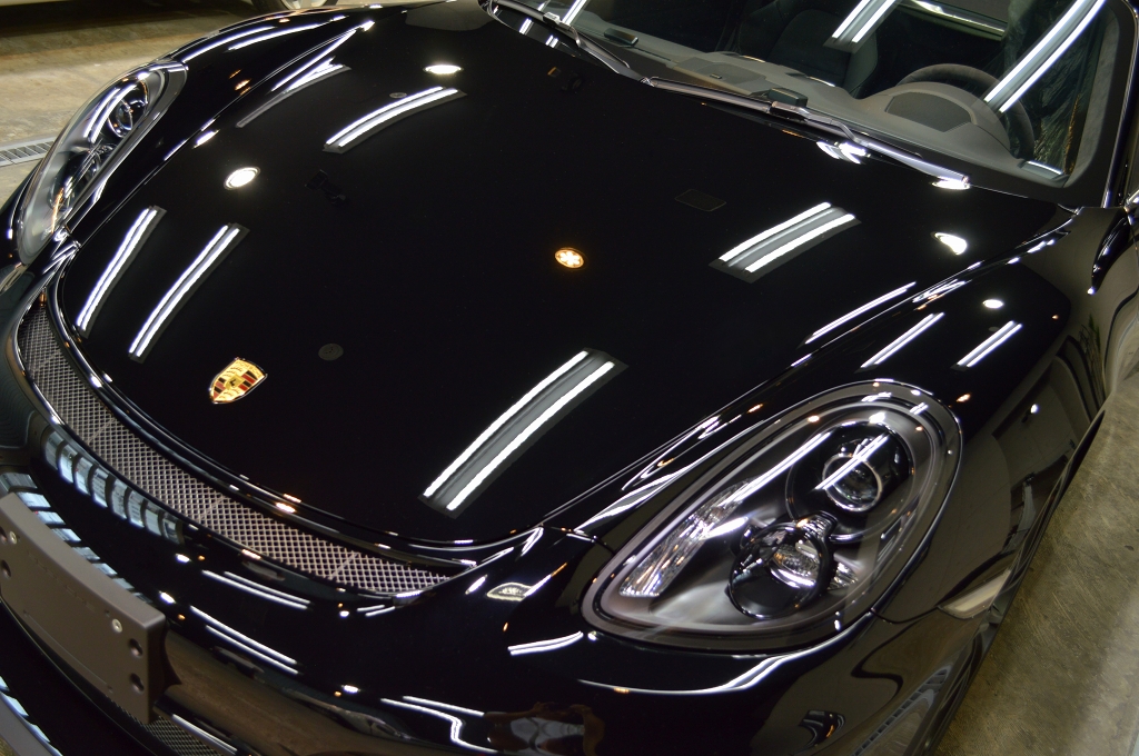 ケイマンGT4 「リボルト・プロ」、フロント「ガラス撥水加工」のご依頼です。