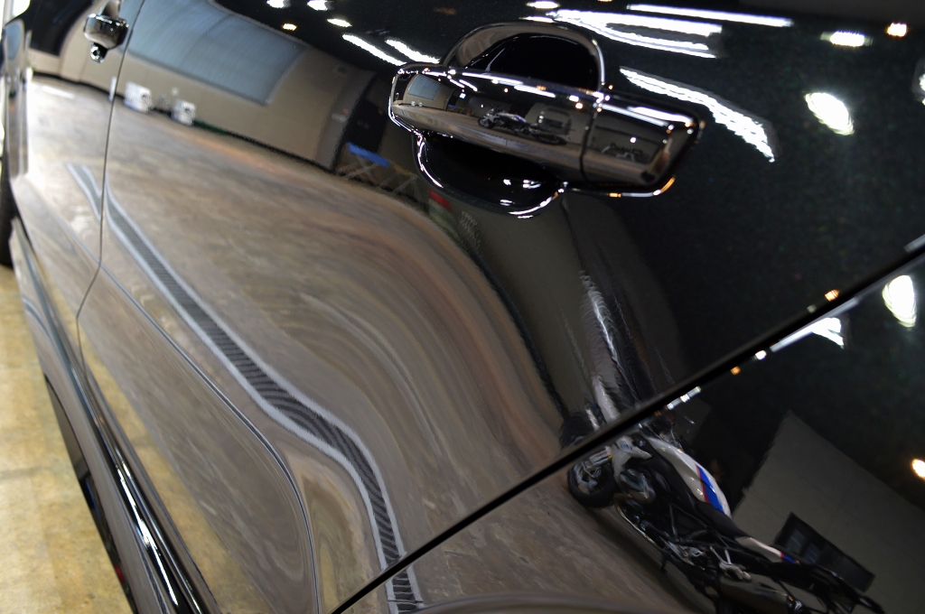 リボルトブランドの自社開発製品のひとつであるTOPコートは、高品位なツヤを与え、防汚効果の高いコーティングとなっております。無溶剤ですので劣化しにくい性質を備えております。紫外線軽減にて、ご愛車を色褪せから守り、それを全体に包み込むように隈なく施工致しました。
