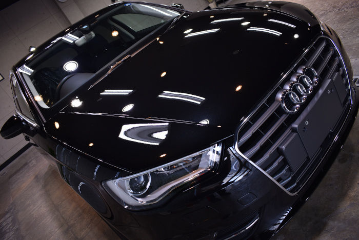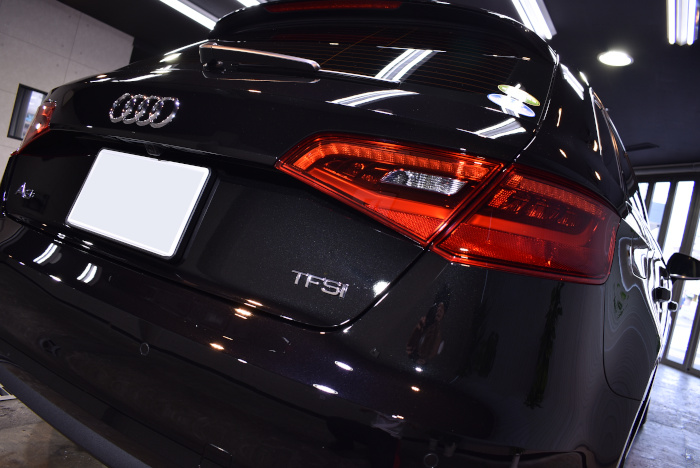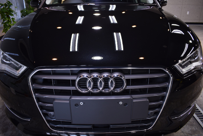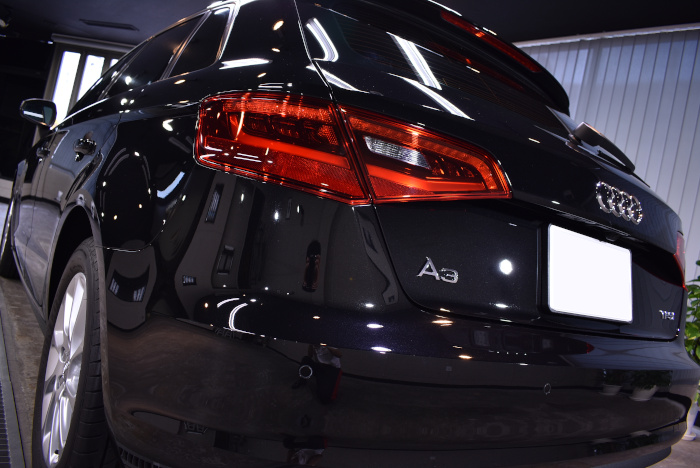 四街道市からお越しのH様アウディ A3スポーツバック (ミストブラックメタリック)のガラスコーティング作業をご紹介いたします。