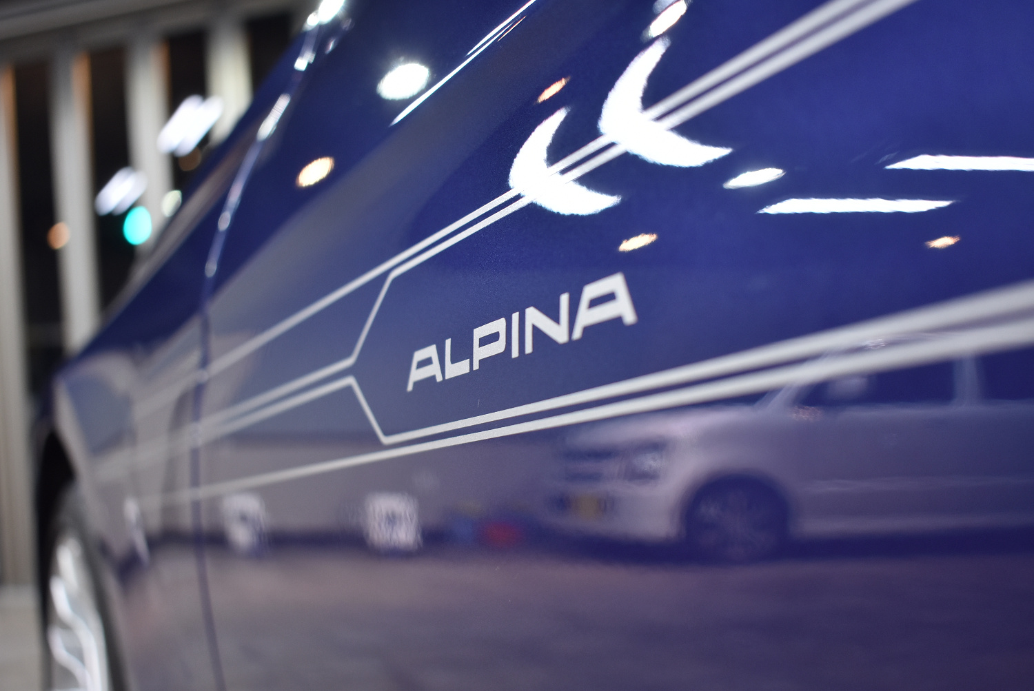 パワートレインはベース車とは別設計されているのもそうですが、何といっても「ALPINA」の文字が書かれたエアロパーツやボディ側面のアルピナラインが特徴的ですね。