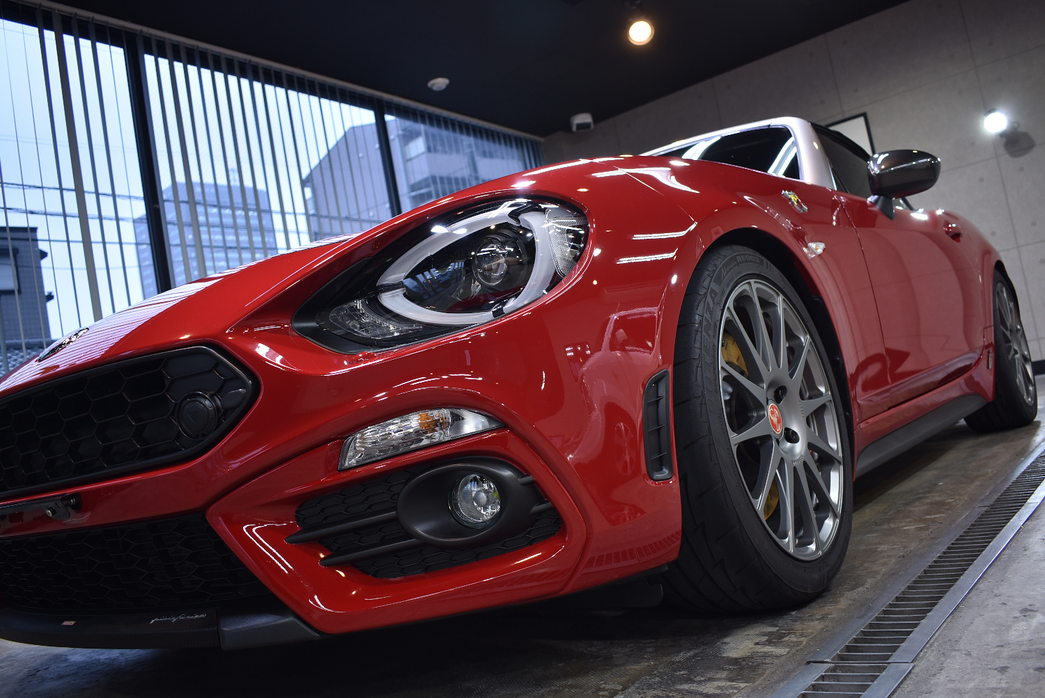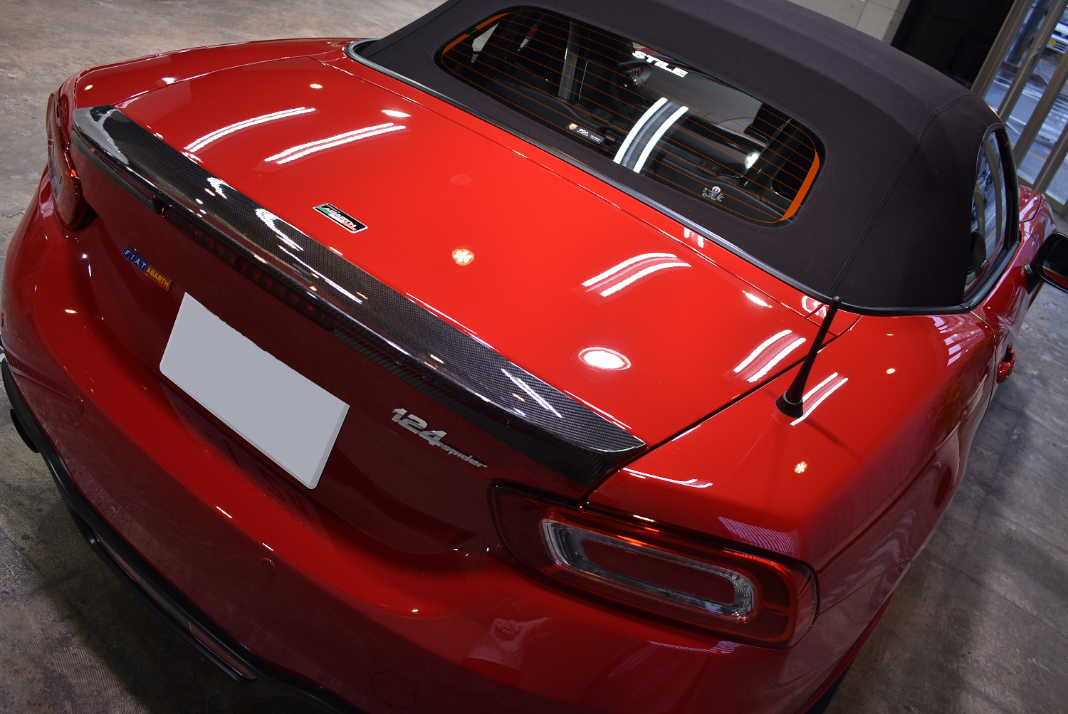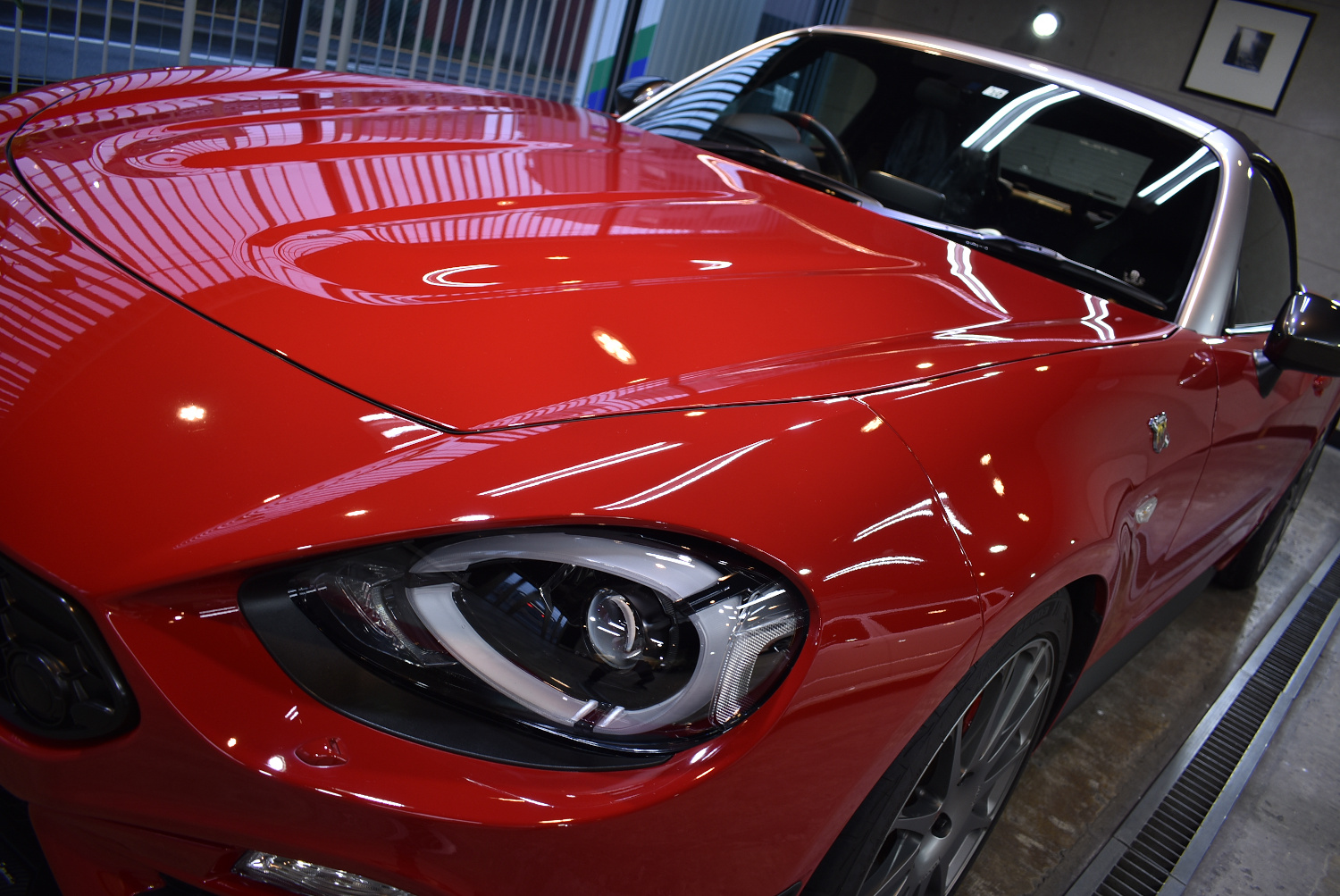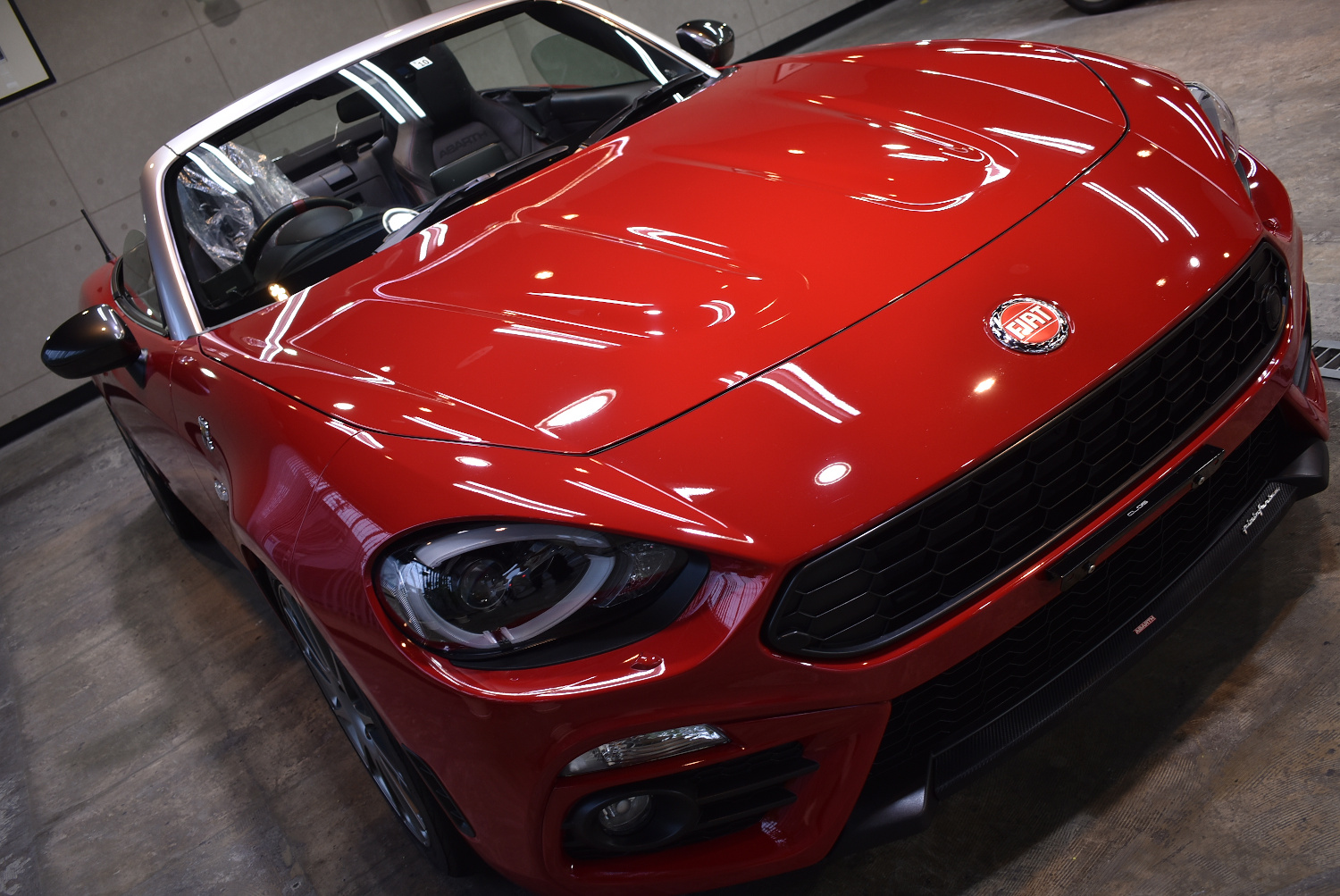 富津市からお越しのS様アバルト 124スパイダー(2016年式:ロッソコスタブラーヴァ)のガラスコーティングのご紹介です。
