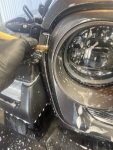 オフロード性能とタフなデザインを兼ね備えたこの一台ですが、新車であっても輸入車特有の長期輸送や屋外保管期間による汚れや鉄粉が付着しているため、最高のコンディションに仕上げるべく、ボディコーティングを施工しました。