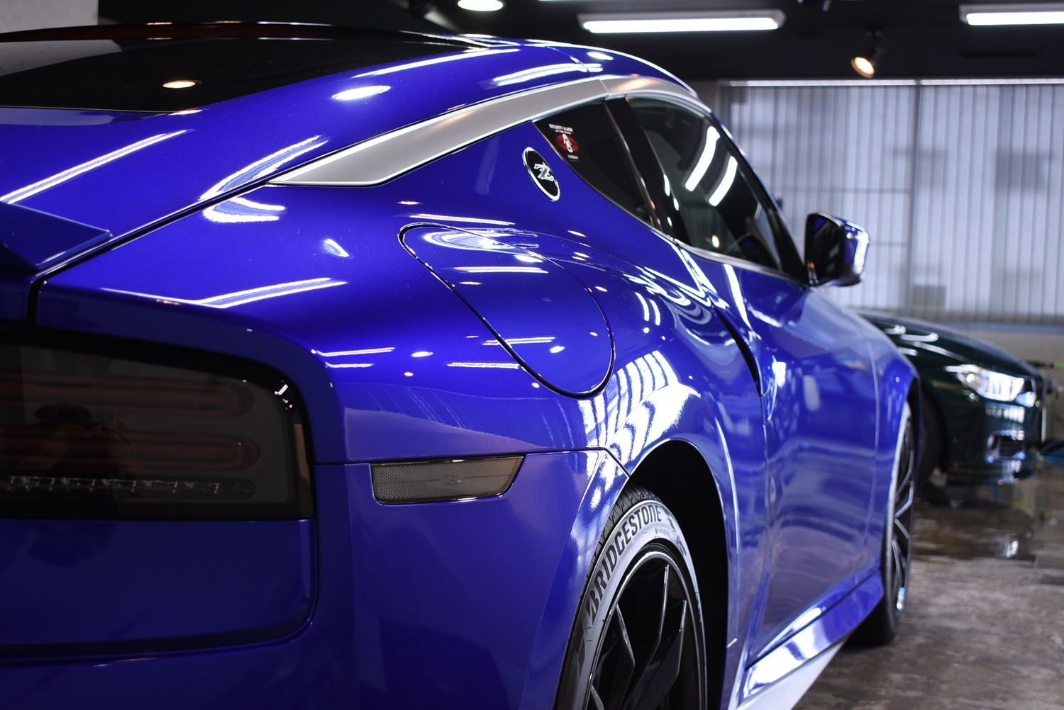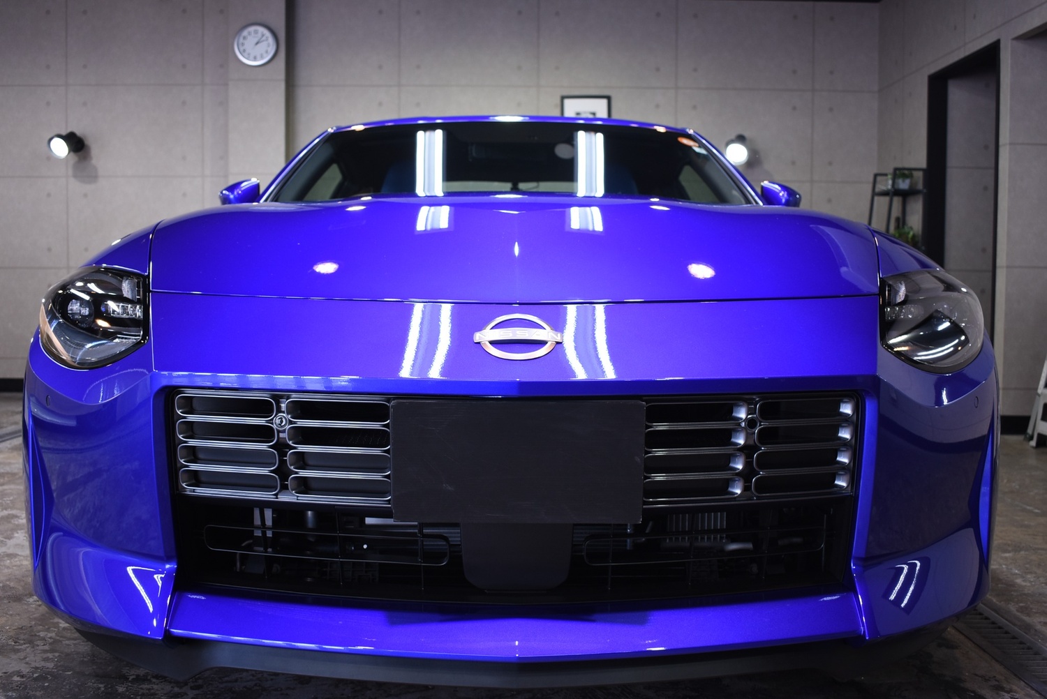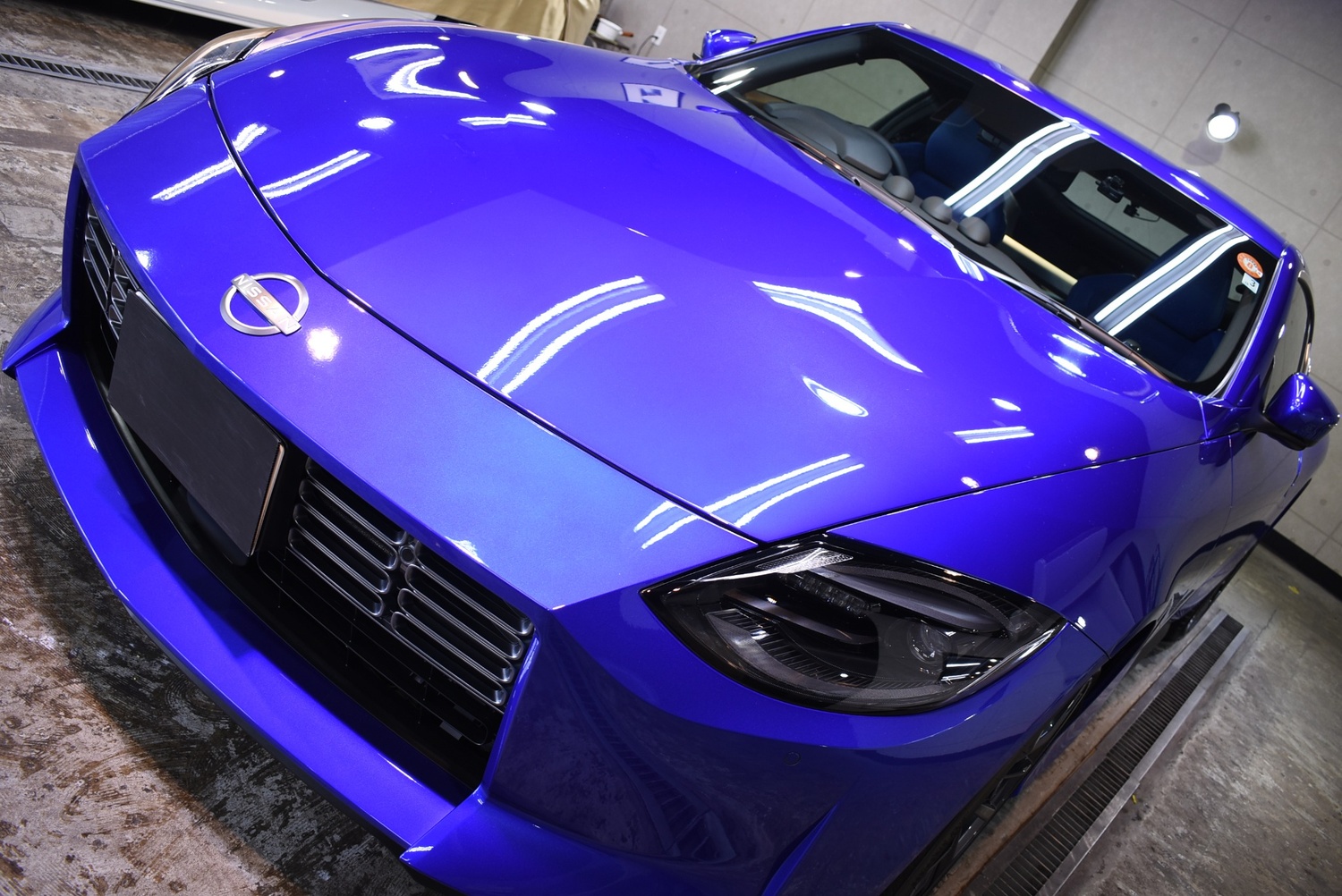 フェアレディZ(新車:ワンガンブルー)のセラミックコーティング作業のご紹介です。