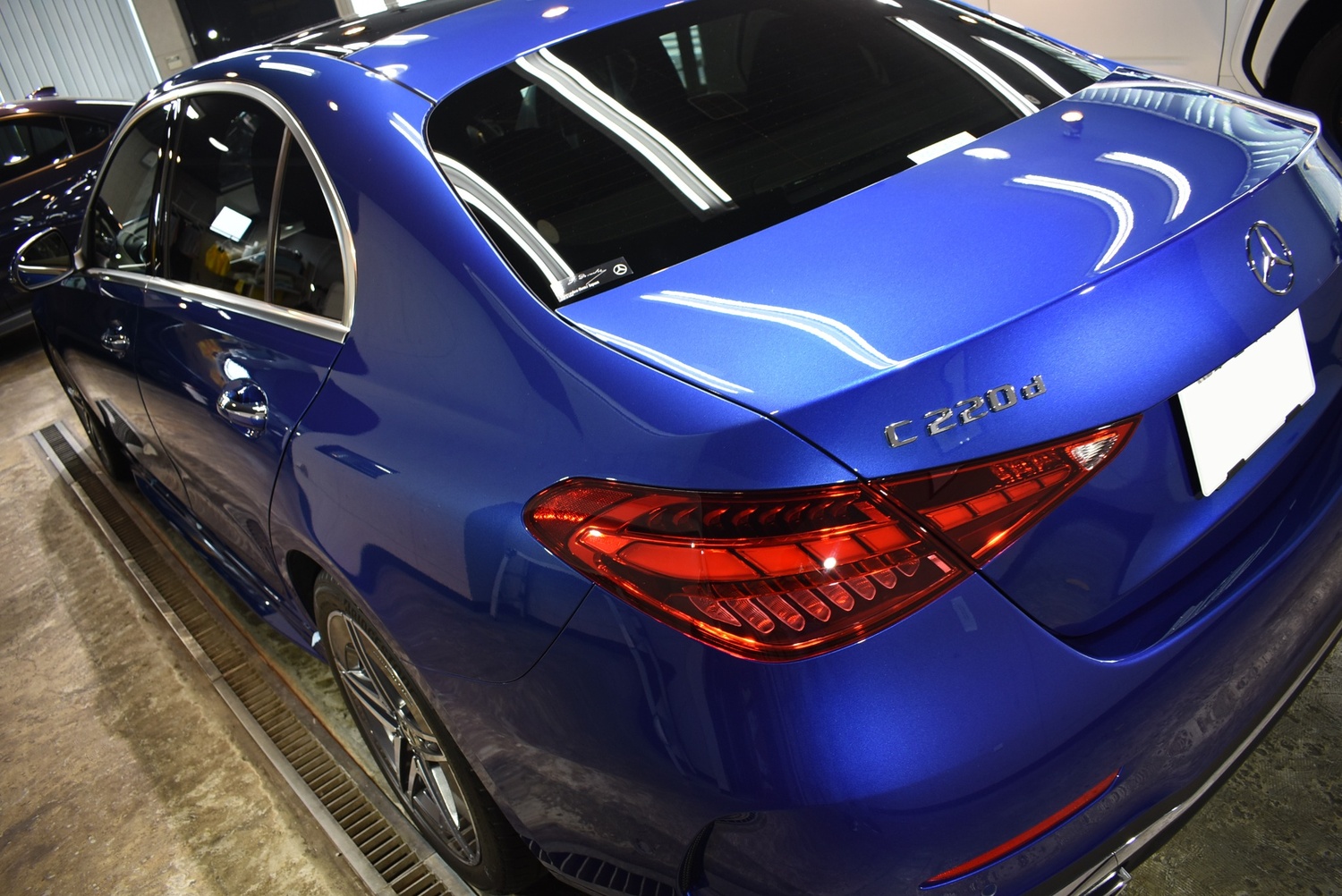 メルセデス・ベンツ C220d(2024年式:スペクトラルブルー)のガラスコーティング作業のご紹介です。