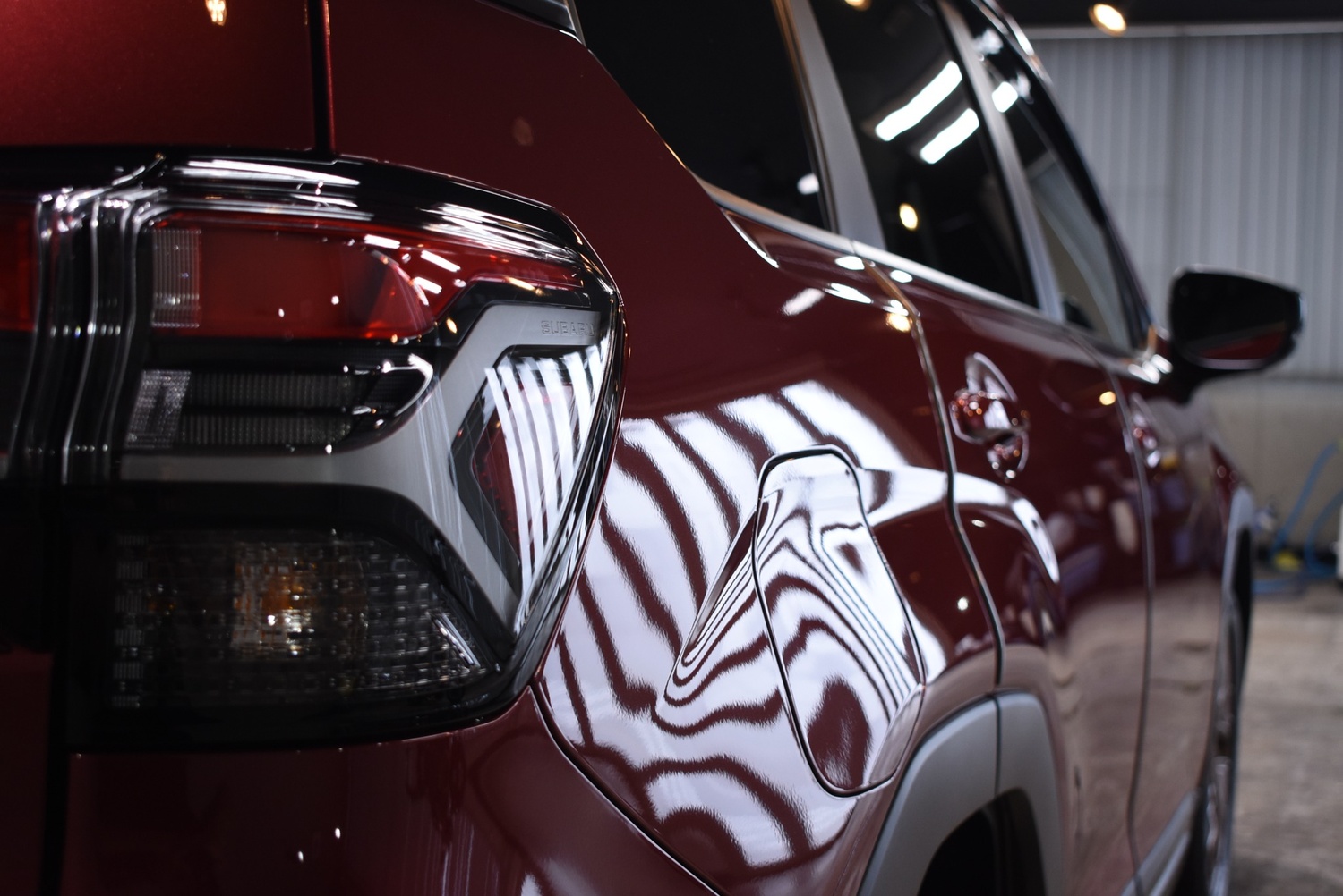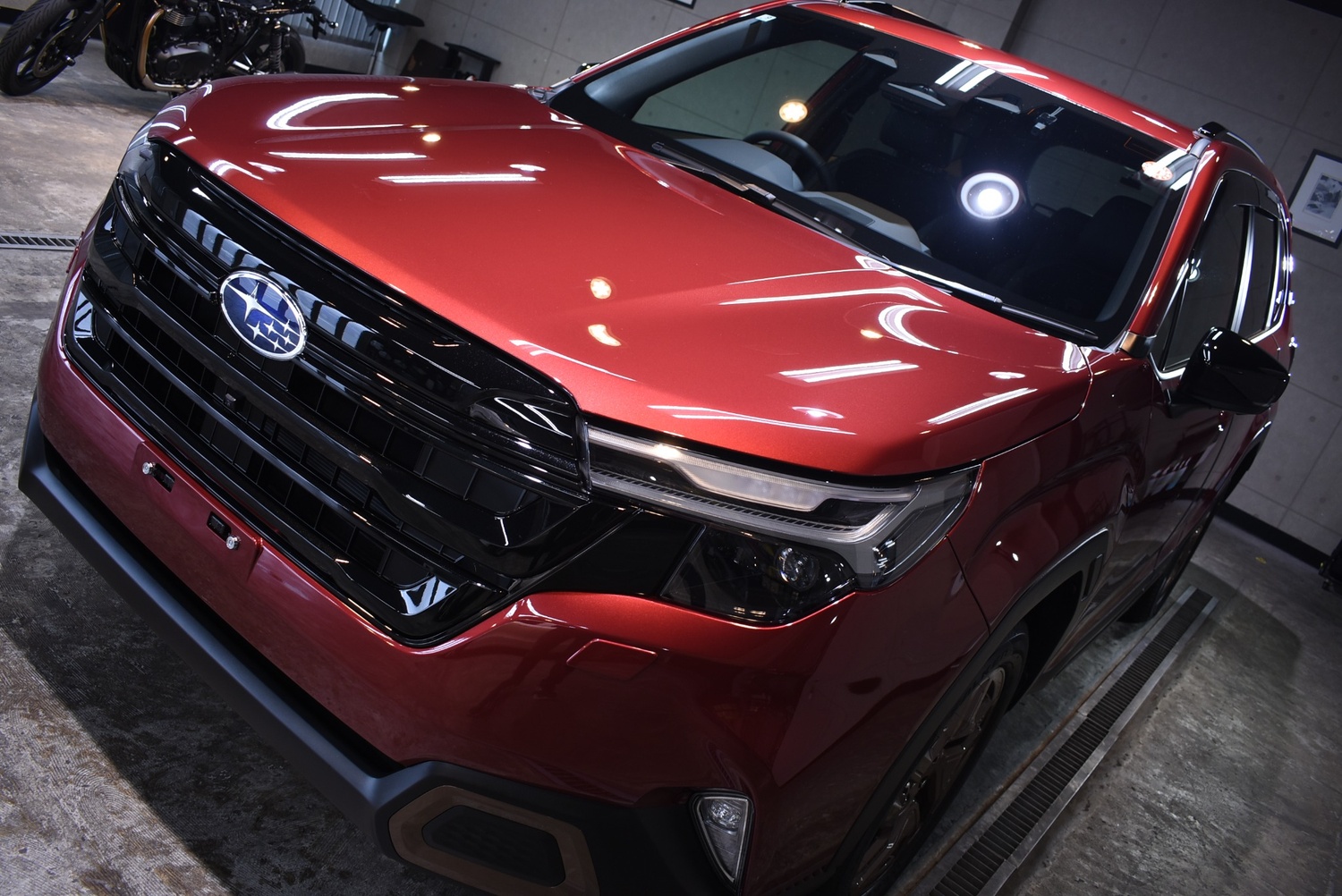 スバル フォレスター(新車:クリムゾンレッド・パール)のセラミックコーティング作業のご紹介です。