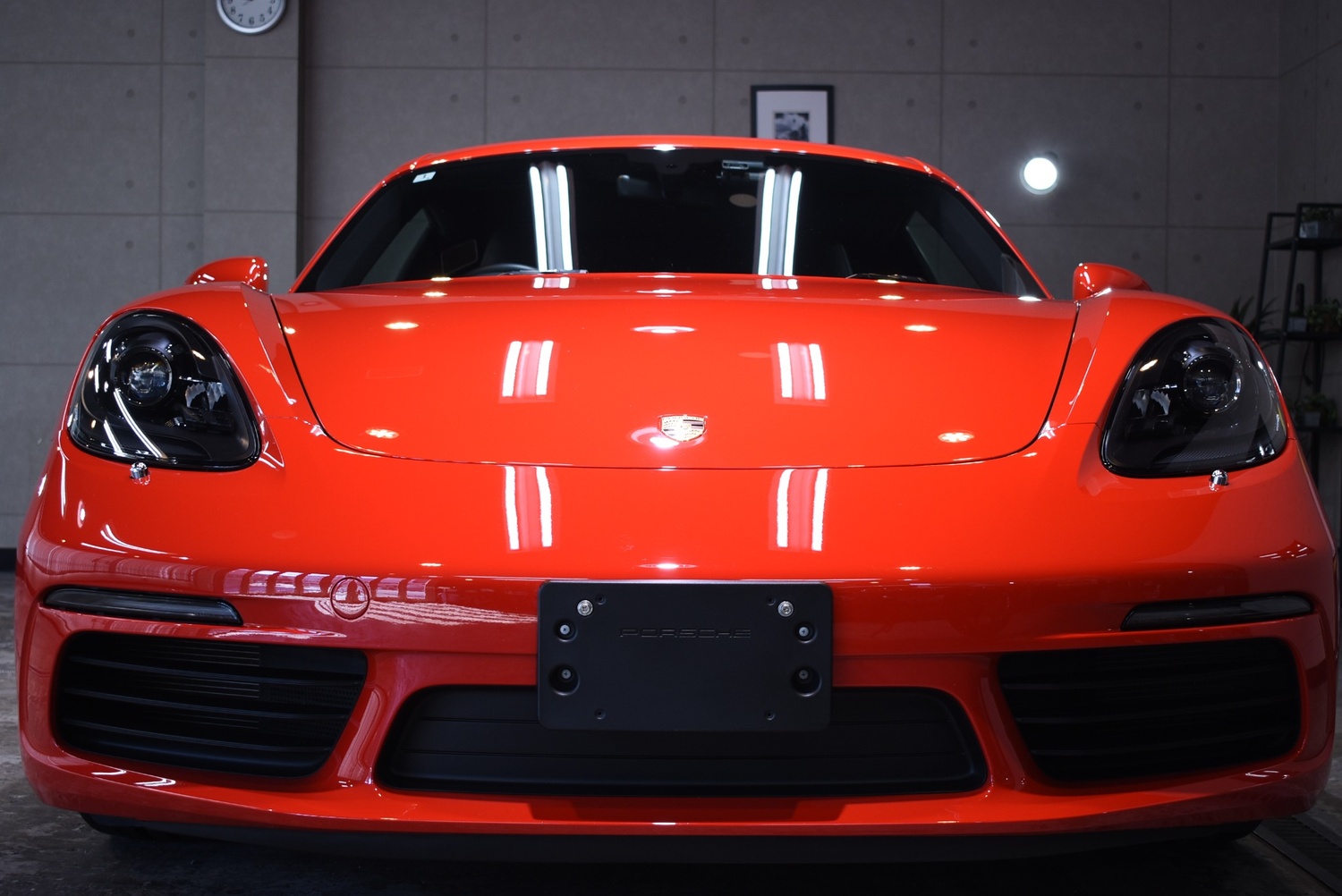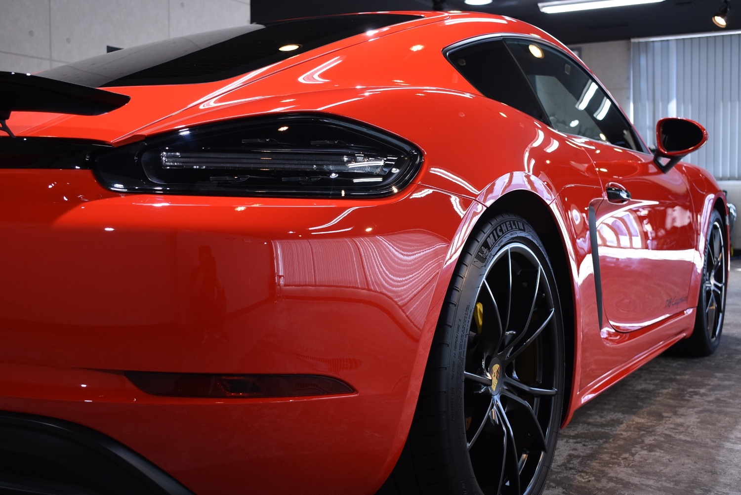 ポルシェ 718ケイマン(2017年式:ガーズレッド)のガラスコーティング作業のご紹介です。
